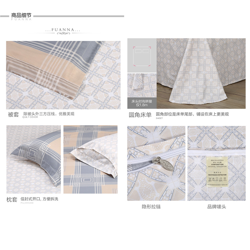 格调时光 床单四件套(被套1件床单1件枕套2件)(适合1.5米床)【40支纯棉/黄】