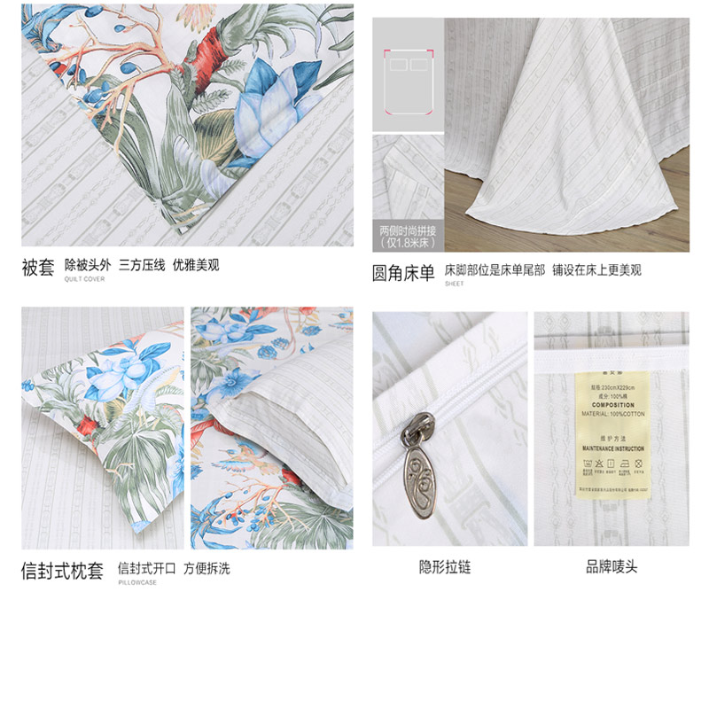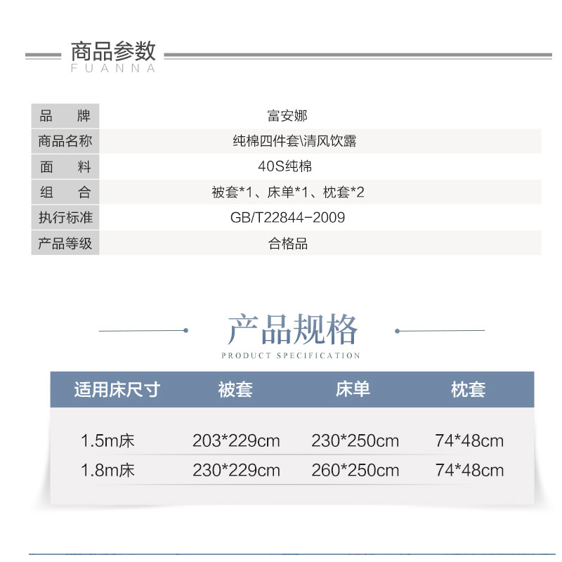 清风饮露 床单四件套(被套1件床单1件枕套2件)(适合1.8米床)【40支纯棉/绿】