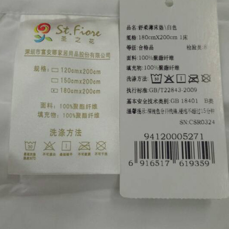 舒柔薄床垫(适用1.8米床)(薄床垫1件)【聚酯纤维/白】