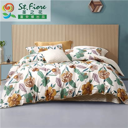 花枝墨染 床单三件套(被套1件床单1件枕套1件)(适合1.2米床)【纯棉/黄】