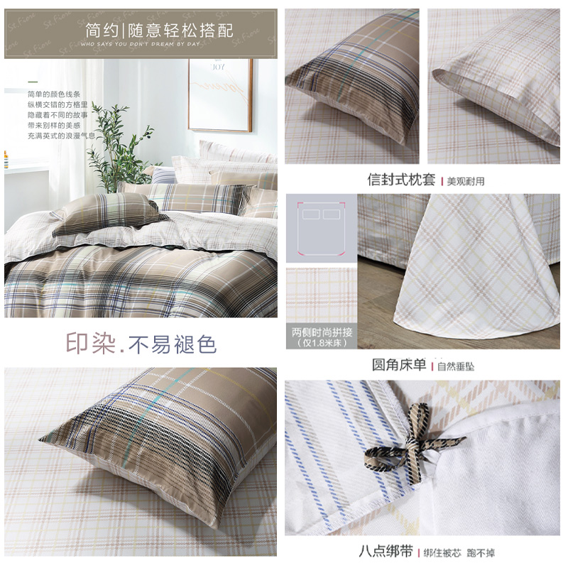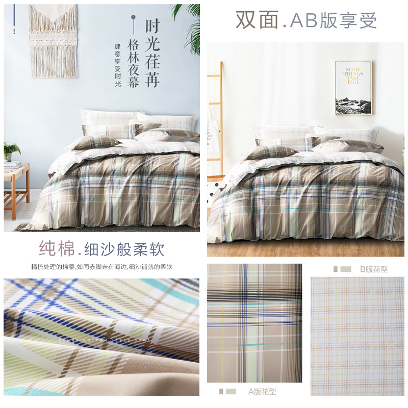 格林夜幕 床单三件套(被套1件床单1件枕套1件)(适合1.2米床)【纯棉/黄】