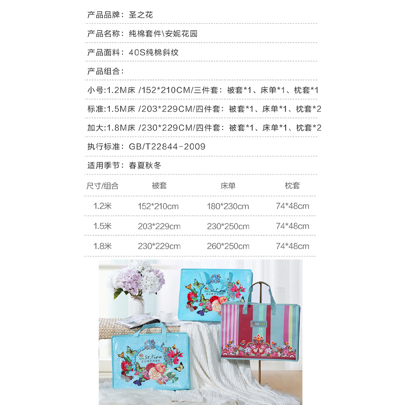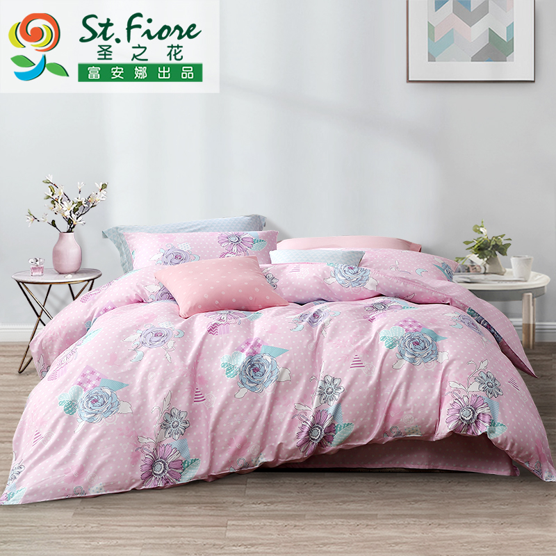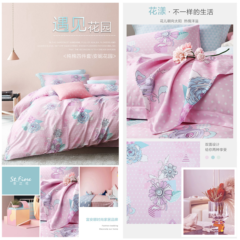 安妮花园 床单三件套(被套1件床单1件枕套1件)(适合1.2米床)【纯棉/粉】