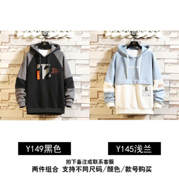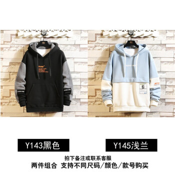 卫衣>>【两件装】慕林初客卫衣男春秋季韩版潮流休闲运动衣服青年学生带帽衫男士连帽上衣男装宽松秋装加绒加厚外套 Y136米色+Y149铁灰 XL