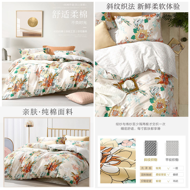 陌上花颜 床单四件套(被套1件床单1件枕套2件)(适合1.5米床)【纯棉/黄】