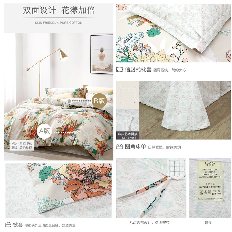 陌上花颜 床单三件套(被套1件床单1件枕套1件)(适合1.2米床)【纯棉/黄】