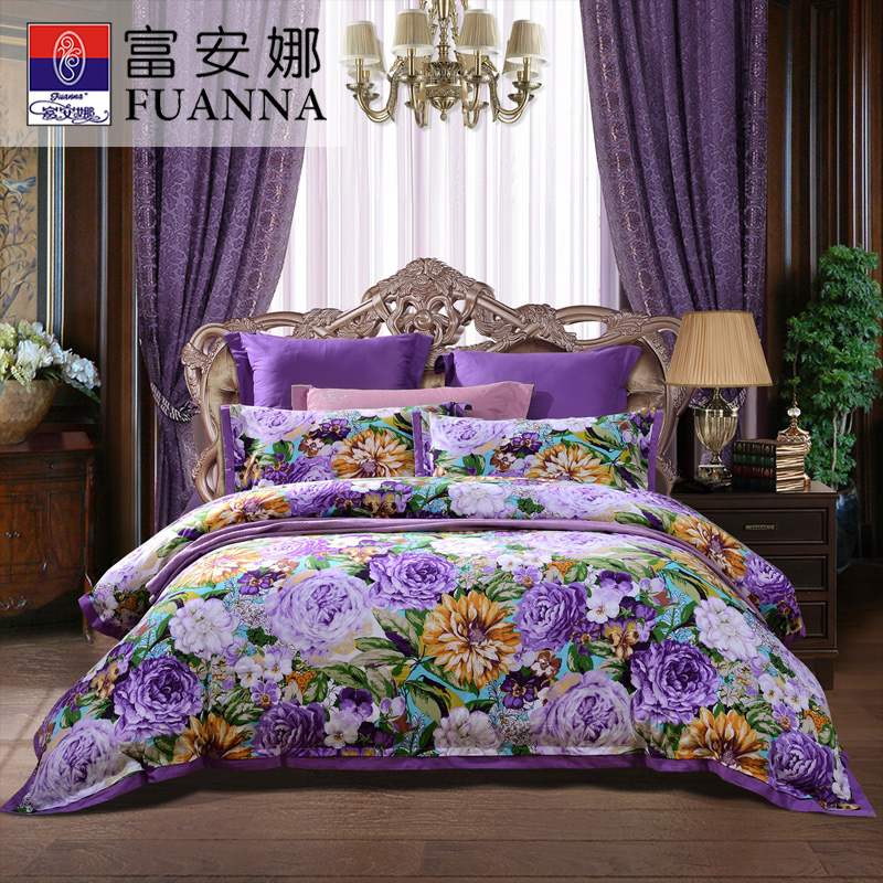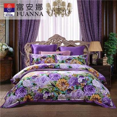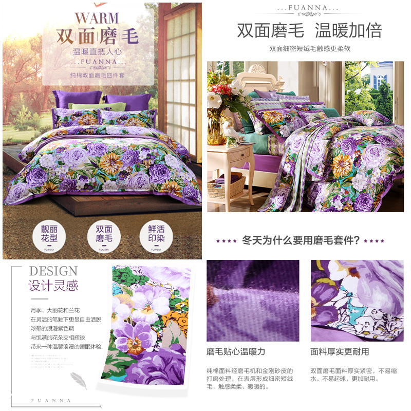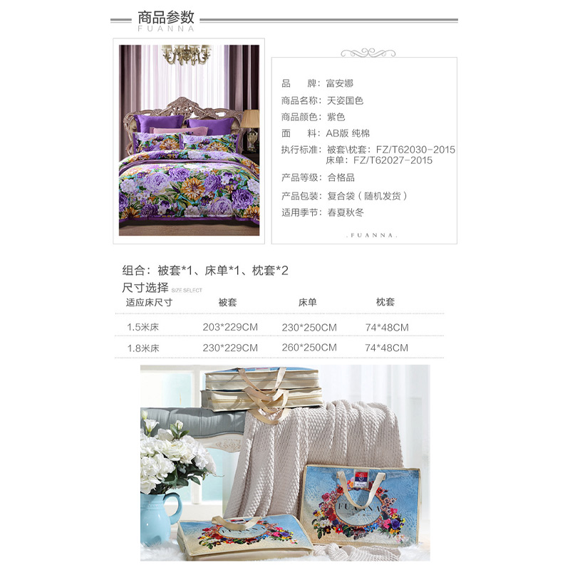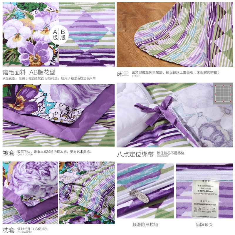 天姿国色 床单四件套(被套1件床单1件枕套2件)(适合1.5米床)【纯棉磨毛/紫】