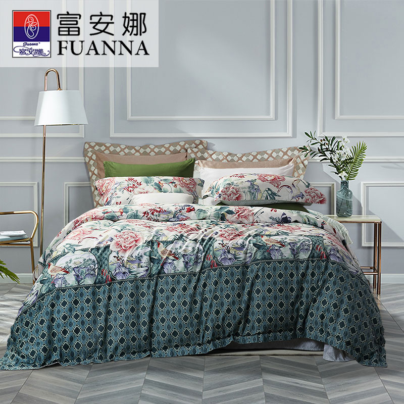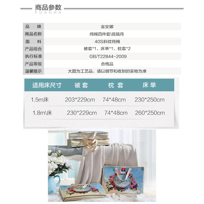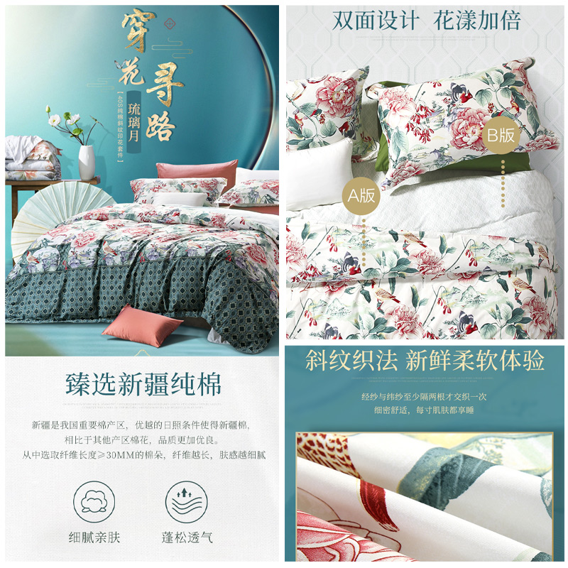 琉璃月 床单四件套(被套1件床单1件枕套2件)(适合1.5米床)【纯棉/深绿】