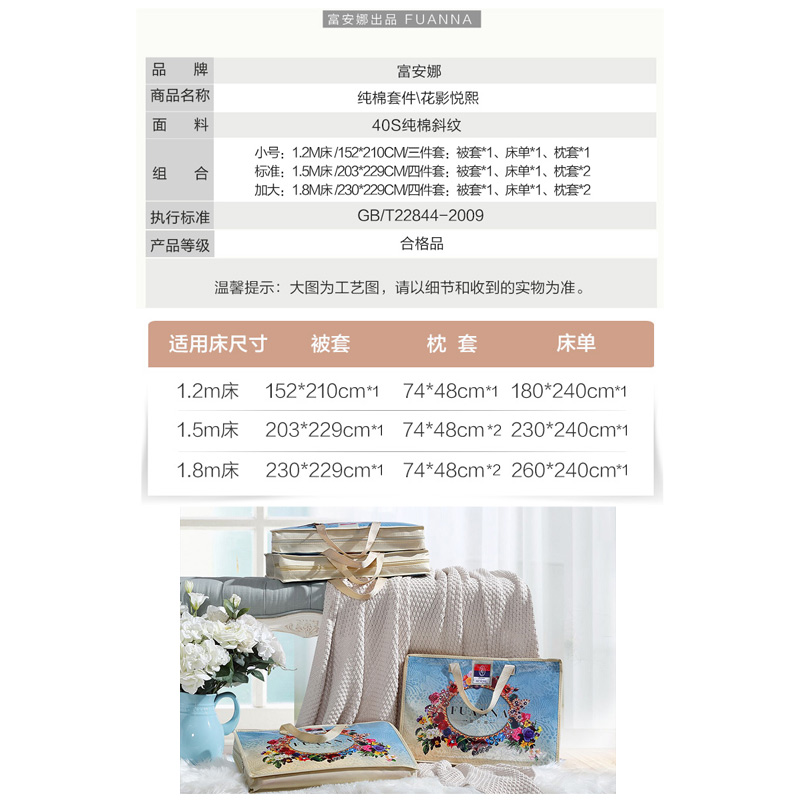 花影月熙 床单三件套(被套1件床单1件枕套1件)(适合1.2米床)【纯棉/黄】