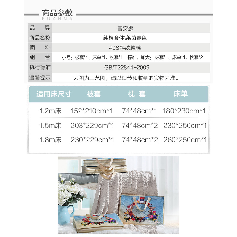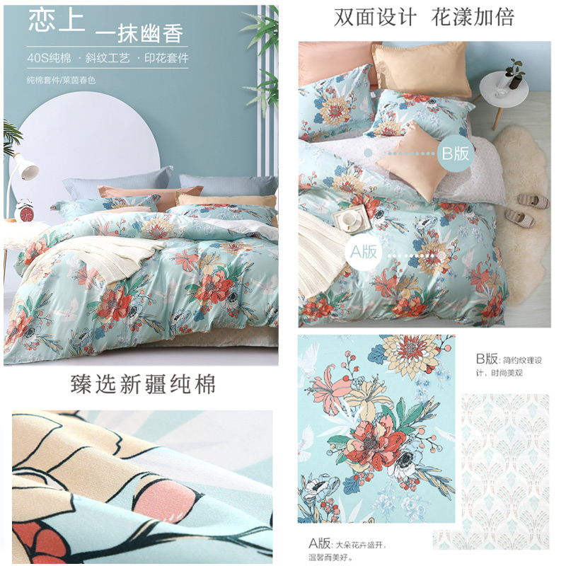 莱茵春色 床单四件套(被套1件床单1件枕套2件)(适合1.5米床)【纯棉/蓝】