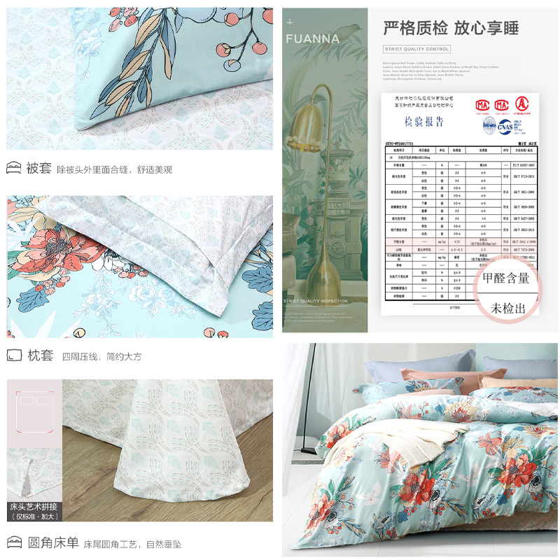 莱茵春色 床单三件套(被套1件床单1件枕套1件)(适合1.2米床)【纯棉/蓝】