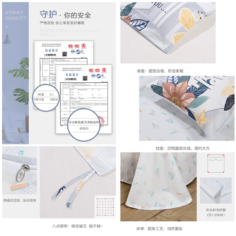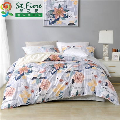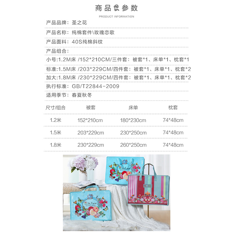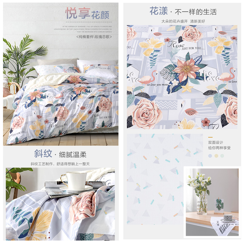 玫瑰恋歌 床单四件套(被套1件床单1件枕套2件)(适合1.5米床)【纯棉/灰】