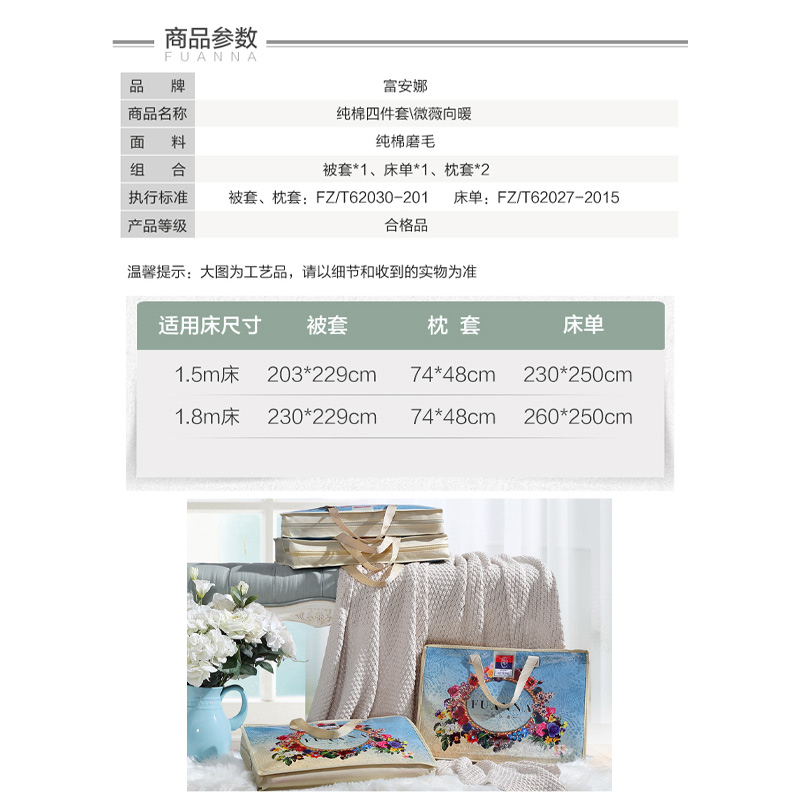 微薇向暖 床单四件套(被套1件床单1件枕套2件)(适合1.8米床)【纯棉磨毛/橙】