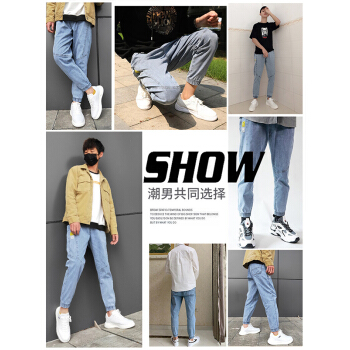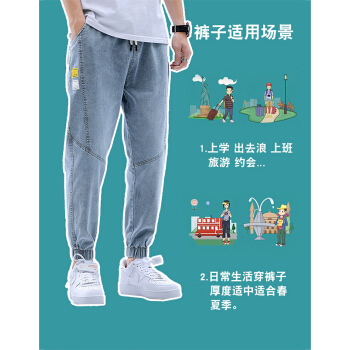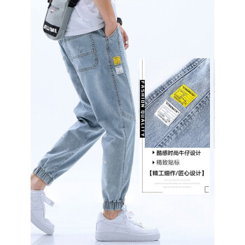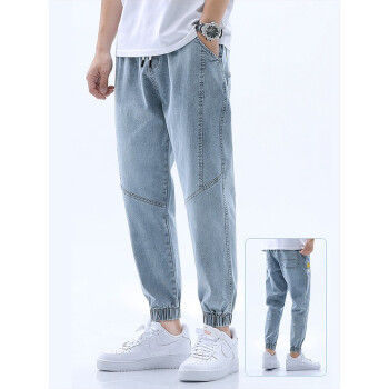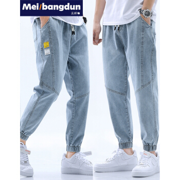 美邦顿 牛仔裤男 春夏新品时尚潮流百搭休闲裤男宽松透气弹力束脚裤小脚裤九分裤长裤男装裤子 浅蓝 XL