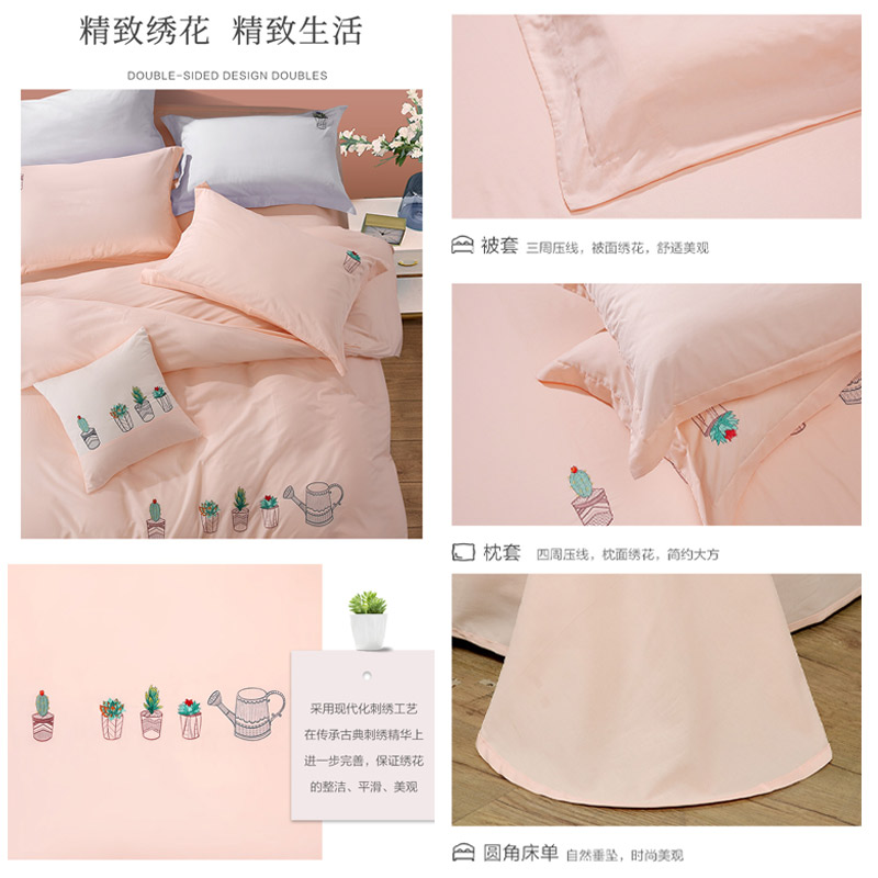 安琪乐园 床单四件套(被套1件床单1件枕套2件)(适合1.5米床)【纯棉/粉】