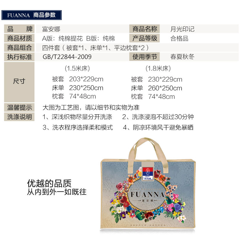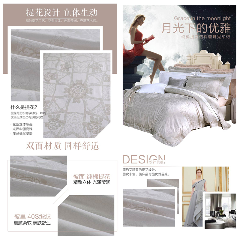 月光印记 床单四件套(被套1件床单1件枕套2件)(适合1.8米床)【纯棉/浅咖】