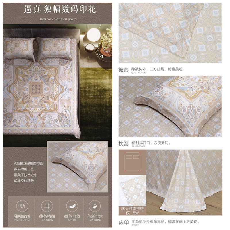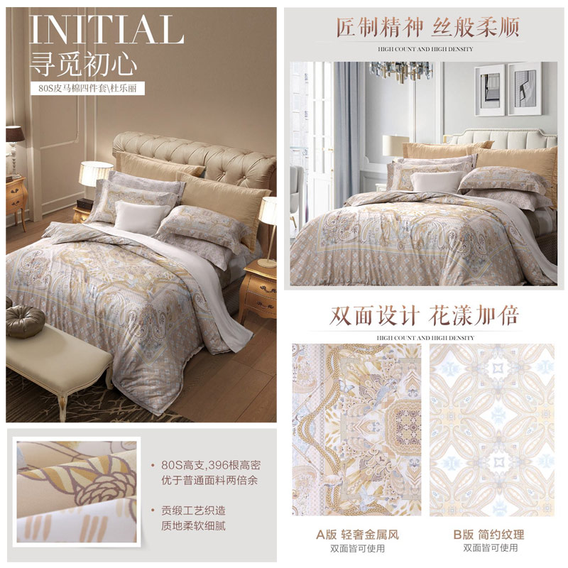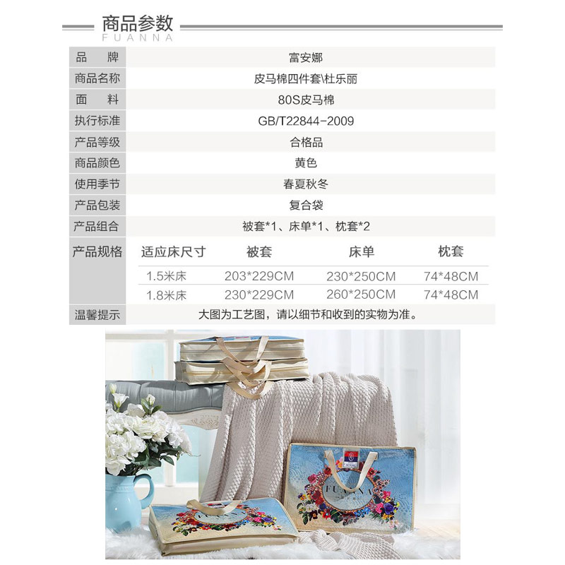 杜乐丽 床单四件套(被套1件床单1件枕套2件)(适合1.5米床)【皮马棉/黄】
