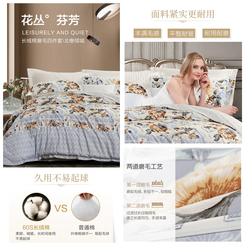 北榭倾城 床单四件套(被套1件床单1件枕套2件)(适合1.5米床)【纯棉磨毛/蓝】