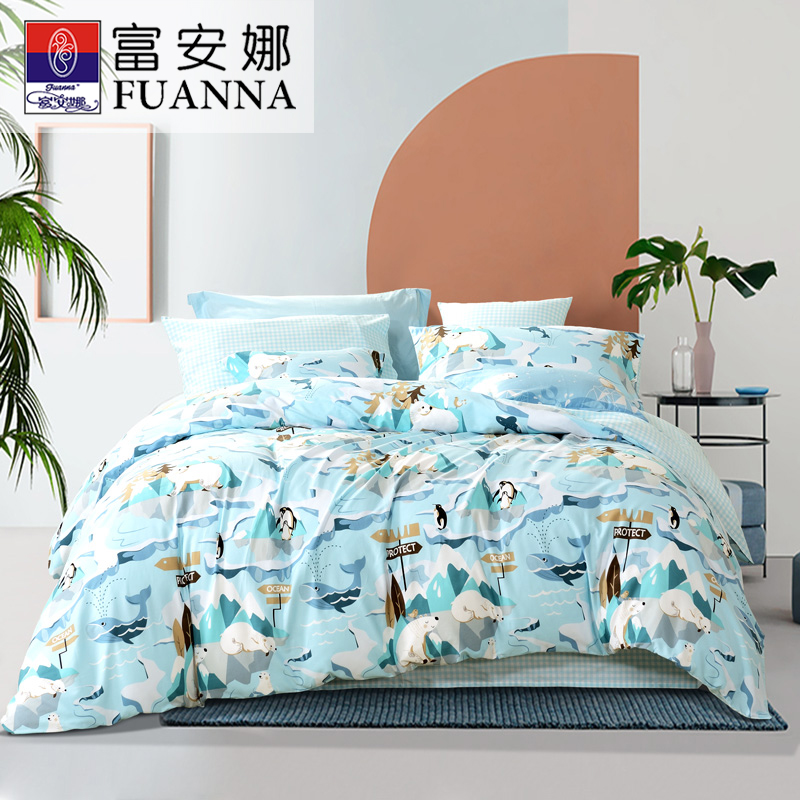 北极故事 床单四件套(被套1件床单1件枕套2件)(适合1.5米床)【纯棉/蓝】