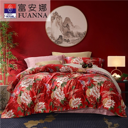 盛世浓情 床单四件套(被套1件床单1件枕套2件)(适合1.8米床)【纯棉缎纹/红】