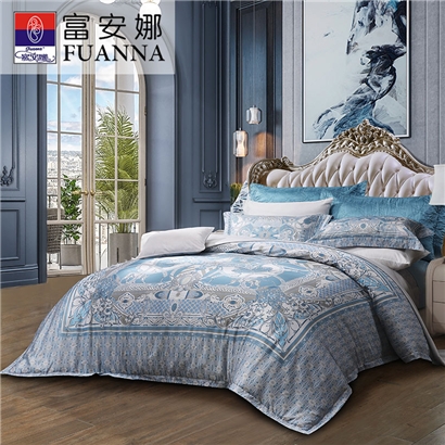 伊亚 床单四件套(被套1件床单1件枕套2件)(适合1.5米床)【100支长绒棉/蓝】