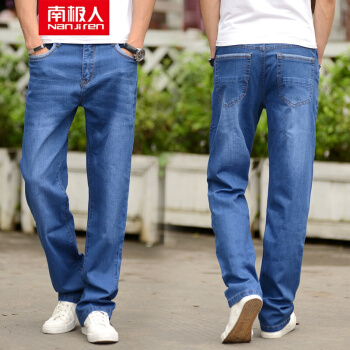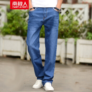 牛仔裤>>南极人牛仔裤男宽松直筒裤2020春夏季新款商务弹力工装休闲大码男裤加肥加大码牛仔长裤子 男 浅蓝色012# 31(2尺4)