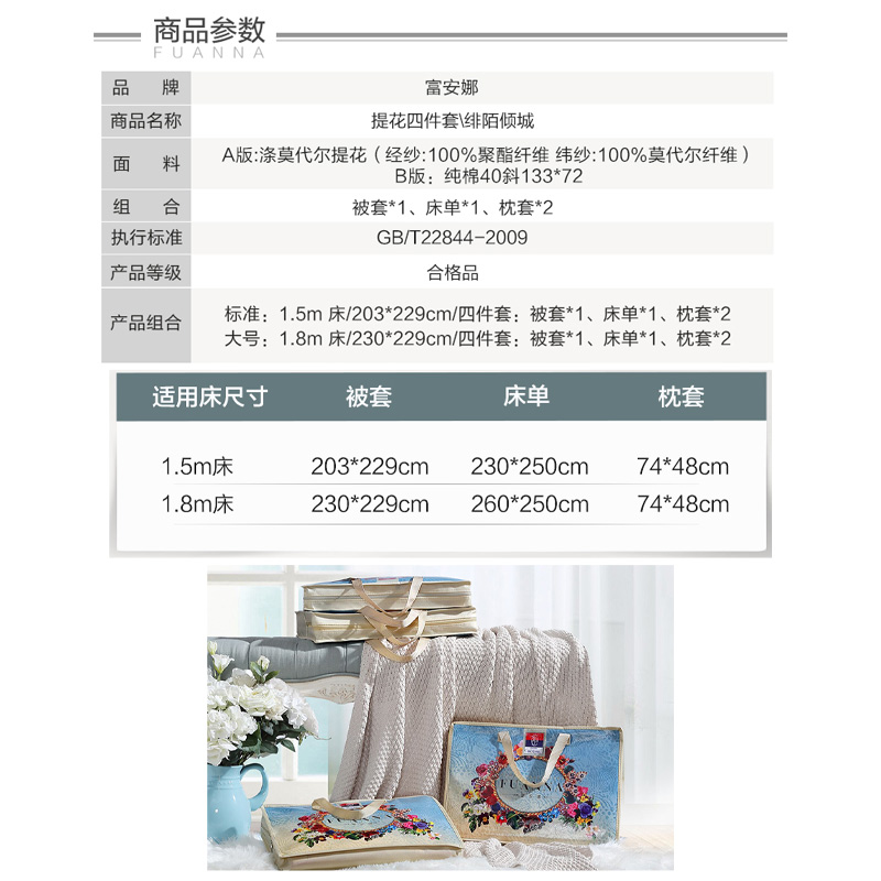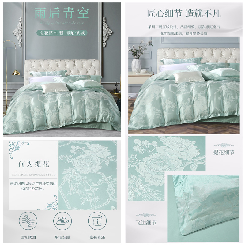 绯陌倾城 床单四件套(被套1件床单1件枕套2件)(适合1.5米床)【A版:涤莫代尔提花;B版:纯棉/绿】