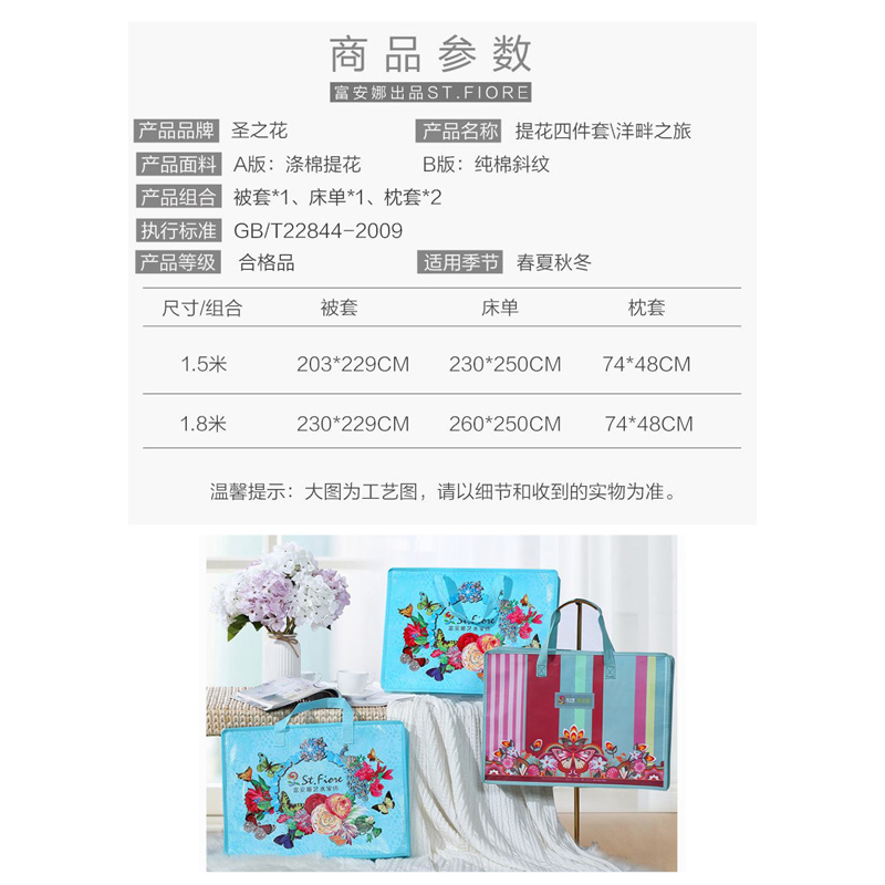 洋畔之旅 床单四件套(被套1件床单1件枕套2件)(适合1.8米床)【A版:涤棉提花;B版:纯棉/蓝】 |