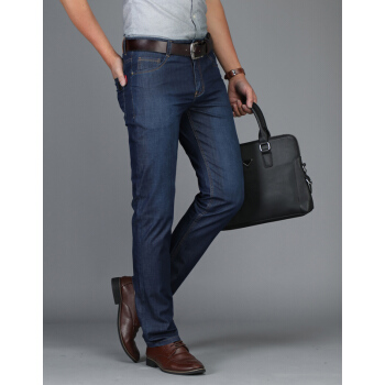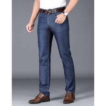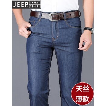 牛仔裤>>吉普(JEEP)牛仔裤男宽松夏季新品薄款直筒长裤商务休闲大码天丝弹力男士裤子 2019款 蓝色 33码 2尺5