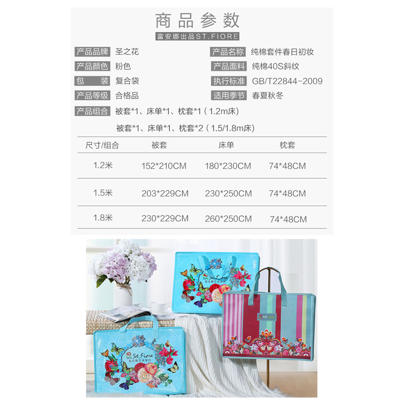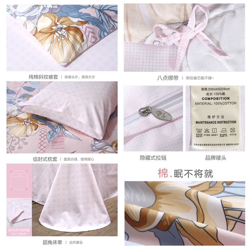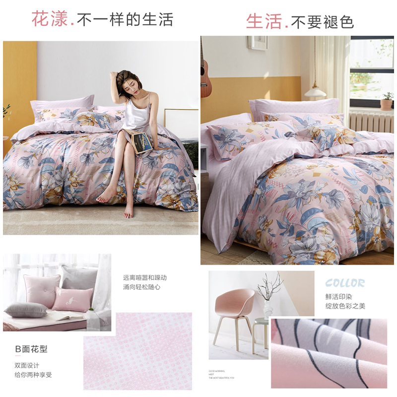 春日初妆 四件套(被套1件床单1件枕套2件)(适合1.5米床)床单【纯棉/粉】