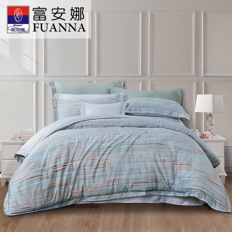 简慕 床单四件套(被套1件床单1件枕套2件)(适合1.8米床)【纯棉缎纹/蓝】