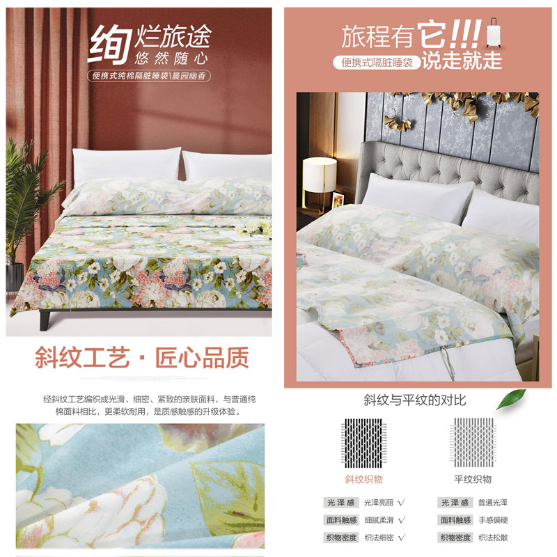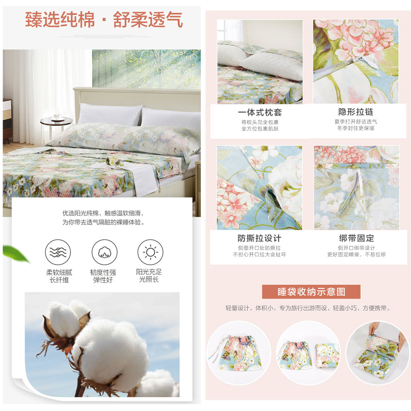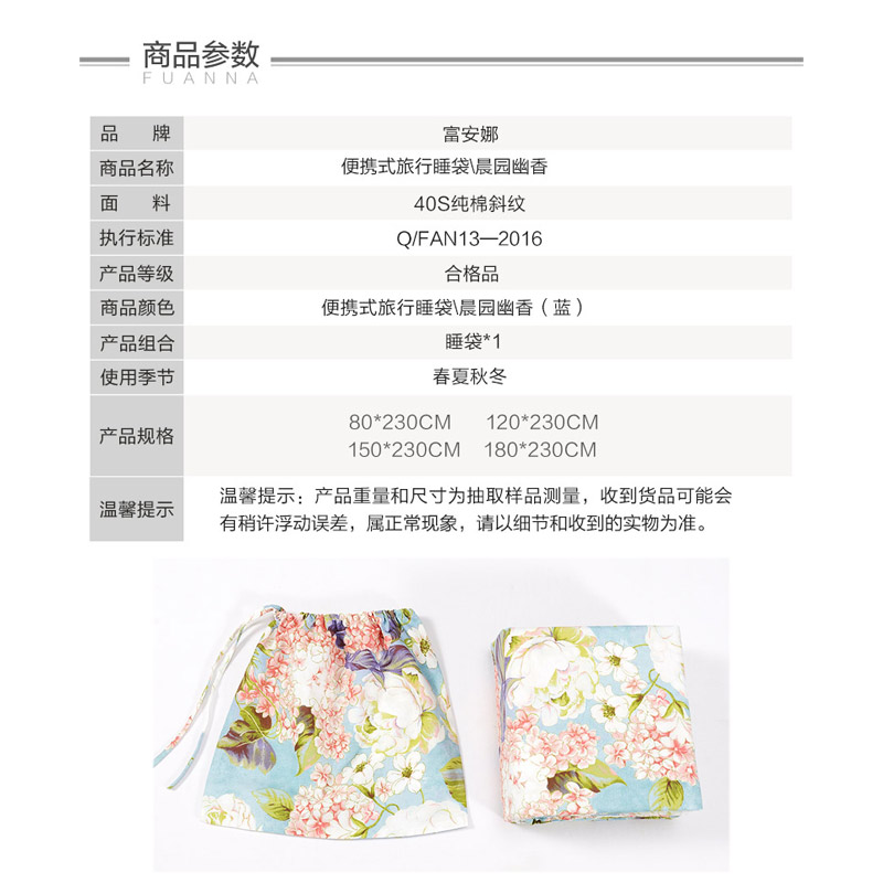 晨园幽香便携式旅行睡袋(睡袋1个)【纯棉/蓝】