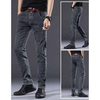 牛仔裤>>阳光巴士牛仔裤男2020夏季薄款修身小脚裤男韩版休闲裤子男士潮流水洗牛仔直筒长裤青少年弹力运动裤男装 605蓝灰色(薄款) 31