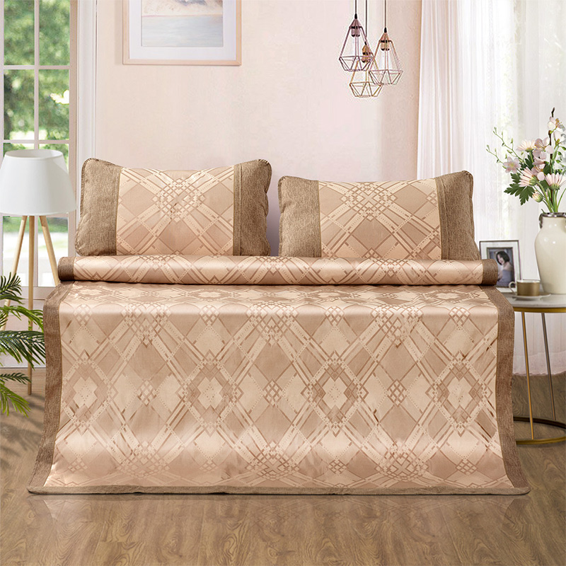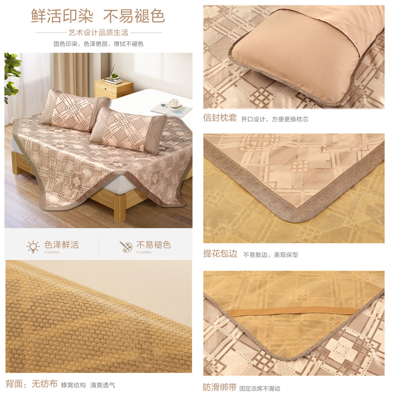 塞林格 冰丝清凉席三件套(凉席1件枕套2件)(适合1.8米床)【聚酯纤维+纤维素材料/咖啡】
