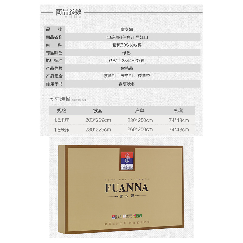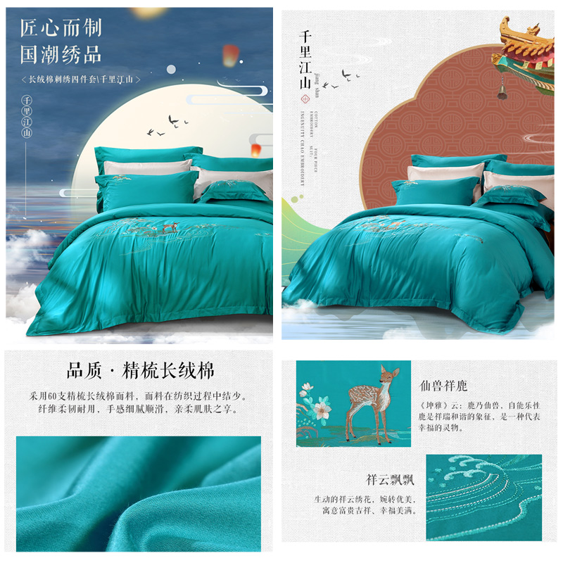 千里江山 床单四件套(被套1件床单1件枕套2件)(适合1.8米床)【精梳棉/绿】