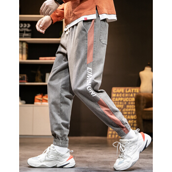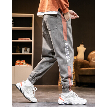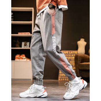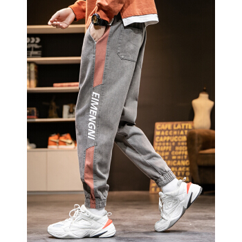 ED.HD长裤子男夏季宽松裤牛仔裤男士牛仔裤时尚潮流韩版男装休闲牛仔裤 K18灰色 XL