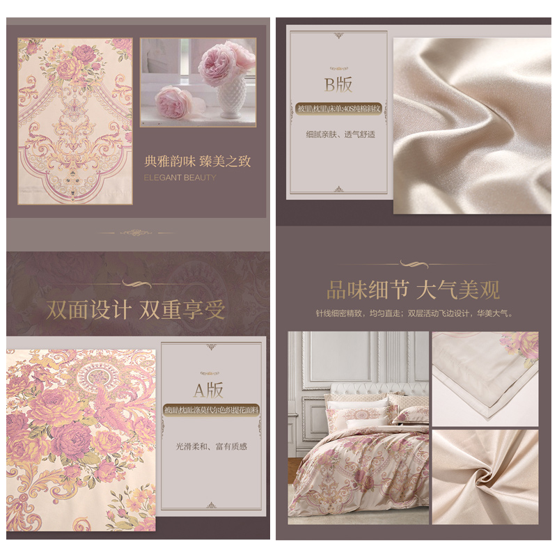 情迷欧若拉 床单四件套(被套1件床单1件枕套2件)(适合1.5米床)【面料:A版:涤莫代尔色织提花;B版:纯棉斜纹/浅黄】 |