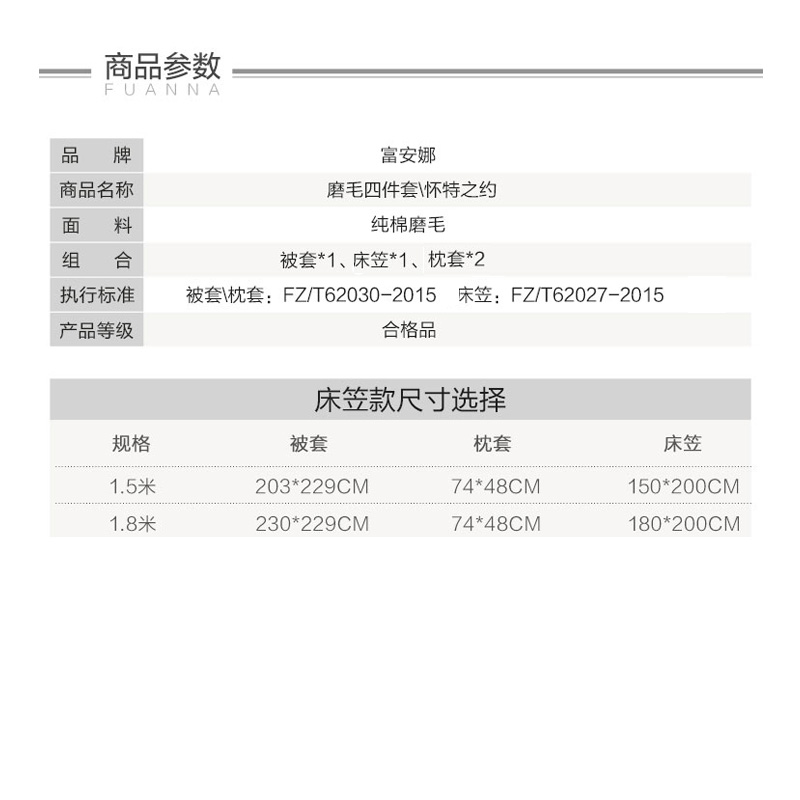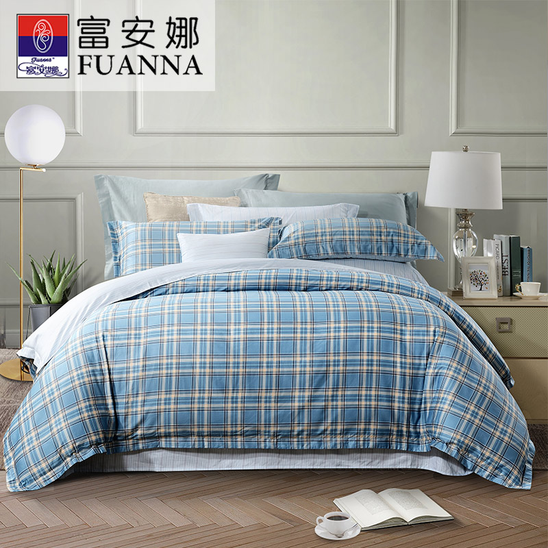 怀特之约床笠四件套(被套1件床笠1件枕套2件)(适合1.8米床)【纯棉磨毛/蓝色】