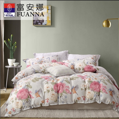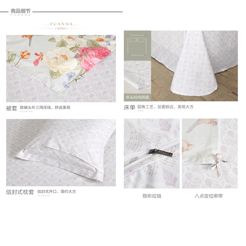 花舞悠然 床单三件套(被套1件床单1件枕套1件)(适合1.2米床)【纯棉/粉色】