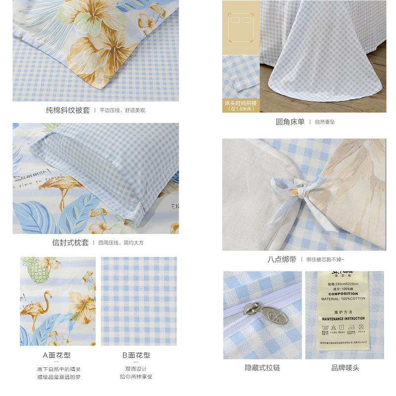 丛林夏梦 床单四件套(被套1件床单1件枕套2件)(适合1.8米床)【纯棉/蓝】