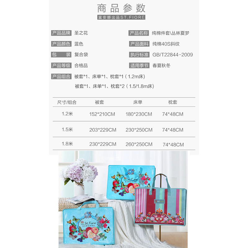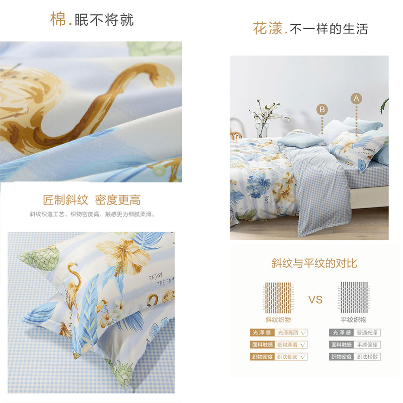 丛林夏梦 床单四件套(被套1件床单1件枕套2件)(适合1.5米床)【纯棉/蓝】