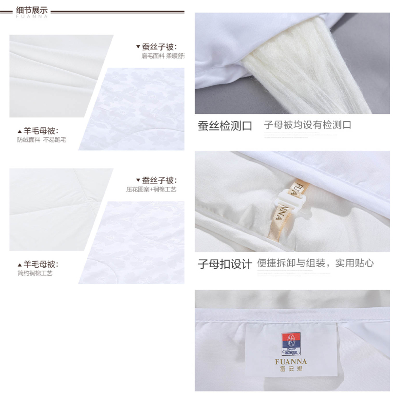 蚕丝羊毛二合一被(被芯1件)(适合1.5米床)【面料:聚酯纤维;填充:子被:蚕丝;母被:羊毛/白色】