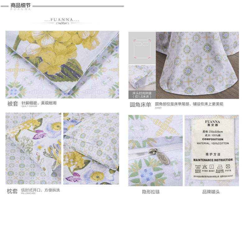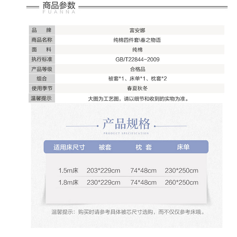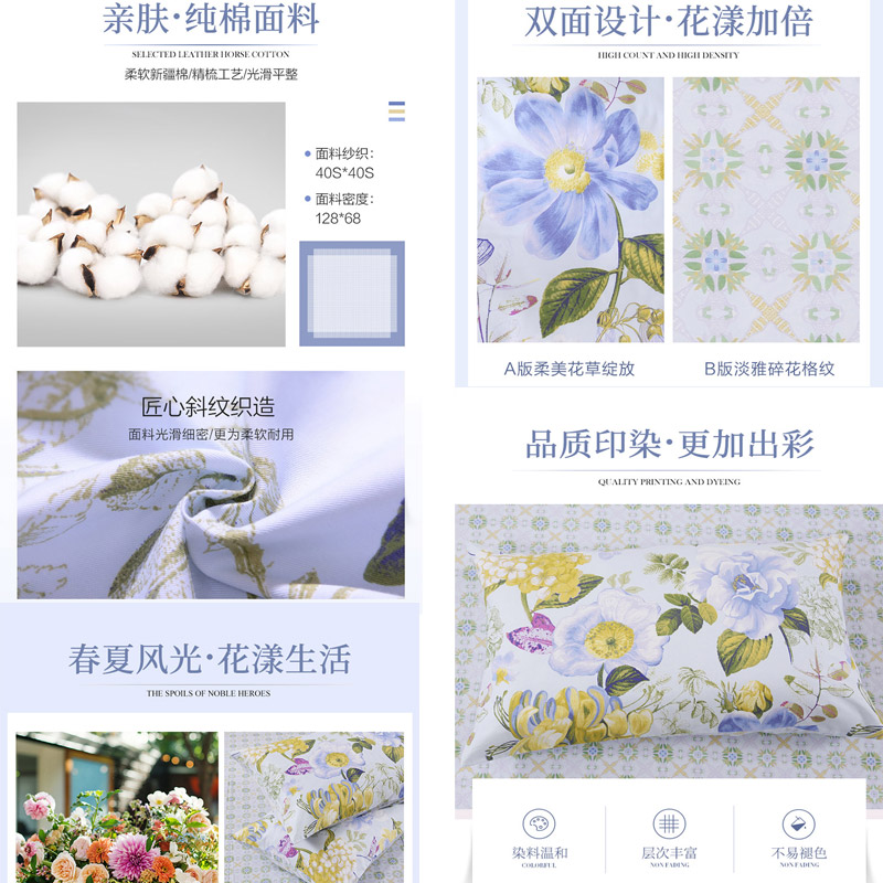 春之物语 床单四件套(被套1件床单1件枕套2件)(适合1.5米床)【40支斜纹纯棉128*68/浅蓝】