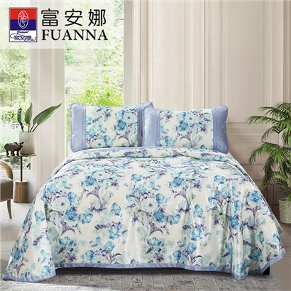 床上套件>>水漾江南 冰丝印花席床单款三件套(凉席1件枕套2件)(适合1.5-1.8米床)【聚酯纤维+纤维素材料/蓝】
