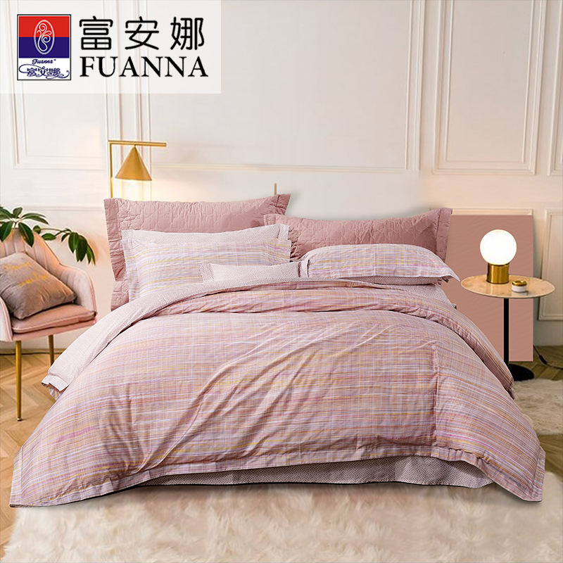 床上套件>>伊诺 纯棉床单四件套(被套1件床单1件枕套2件)(适合1.8米床)【40支纯棉/粉】