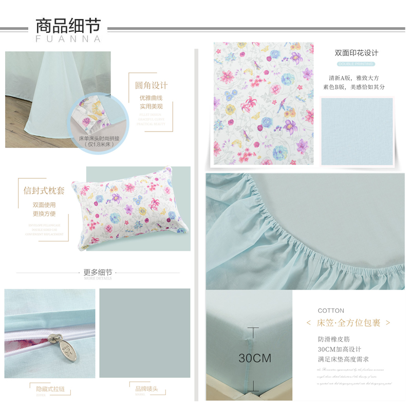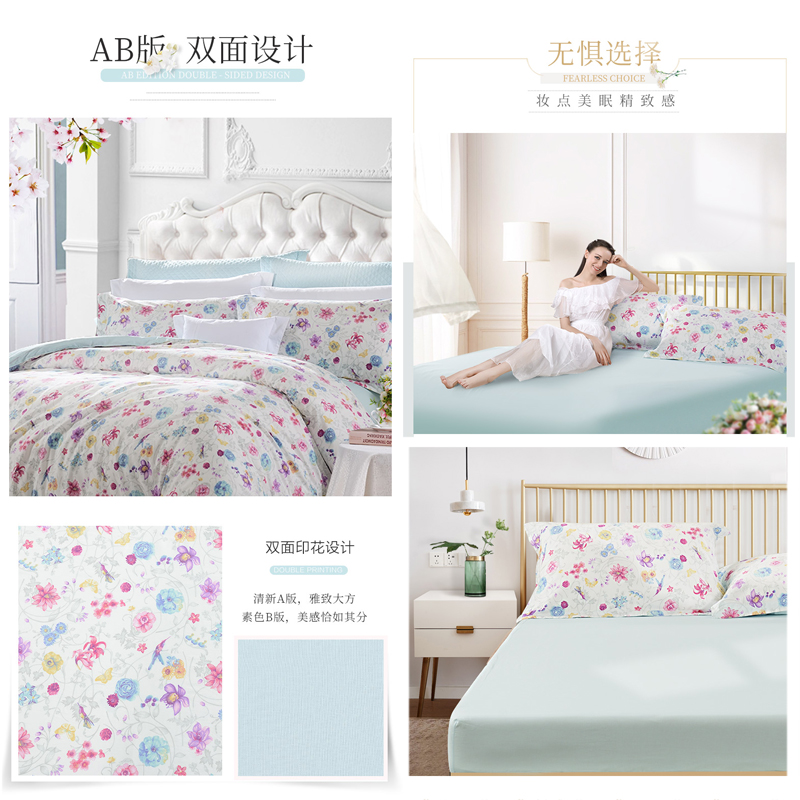 花恋初语 床笠三件套(被套1件床笠1件枕套1件)(适合1.2米床)【聚酯纤维/标准色】