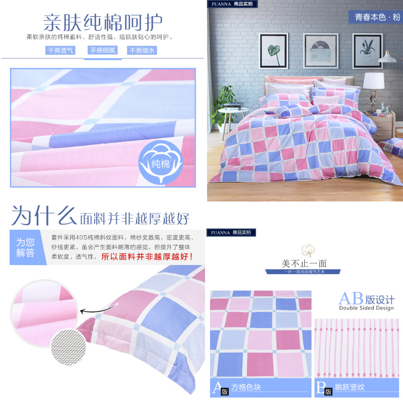 青春本色床单四件套(被套1件床单1件枕套2件)(适合1.5米床)【纯棉/粉】