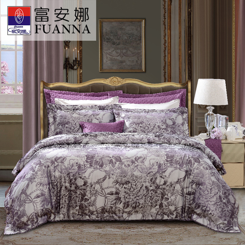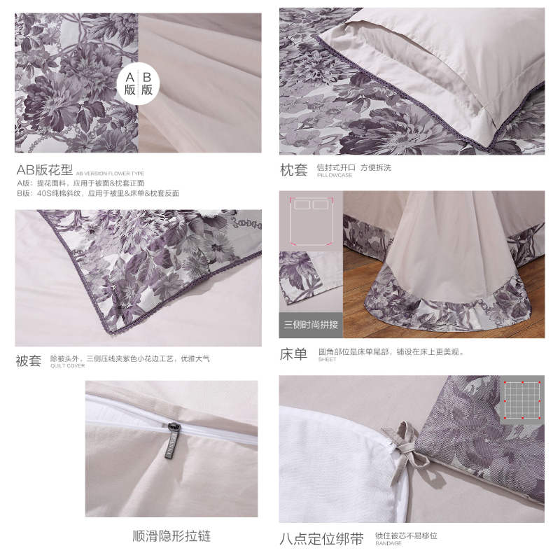 莫佳娜 床单四件套(被套1件床单1件枕套2件)(适合1.5米床)【A版:涤粘提花;B版:纯棉/灰】