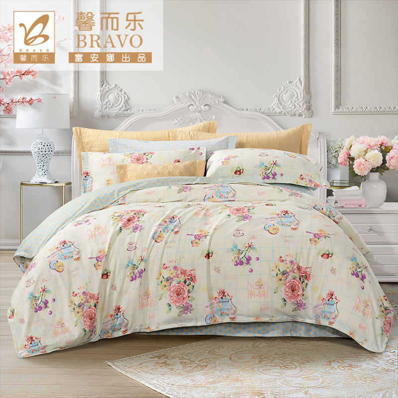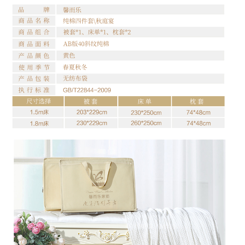 秋庭宴 床单四件套(被套1件床单1件枕套2件)(适合1.8米床)【面料:纯棉40支斜纹/黄】