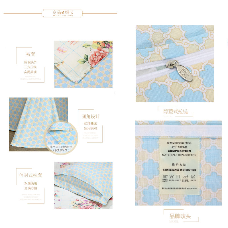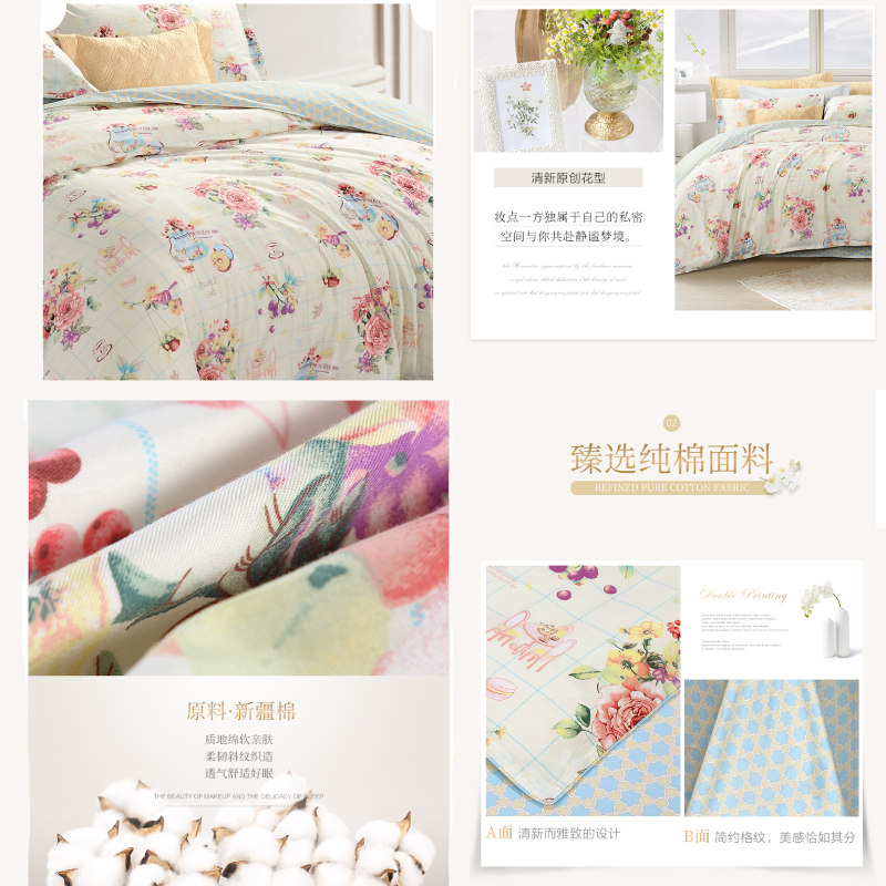 秋庭宴 床单四件套(被套1件床单1件枕套2件)(适合1.5米床)【面料:纯棉40支斜纹/黄】