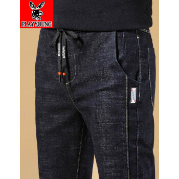 牛仔裤>>PLAYYOUNG 牛仔裤男修身夏季休闲裤男士薄款夏天长裤子直筒大码春秋韩版潮流潮牌百搭 326黑色-常规款 31